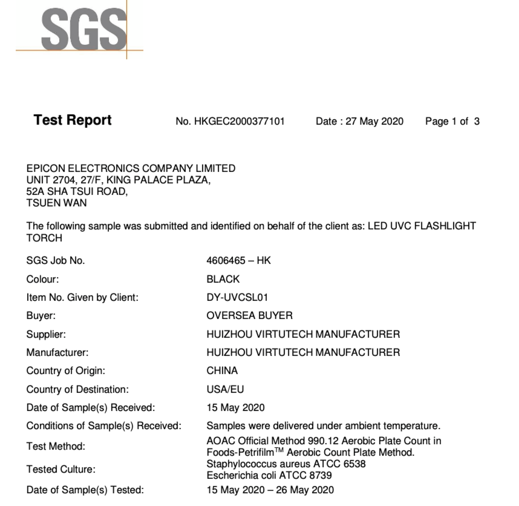 SGS test report